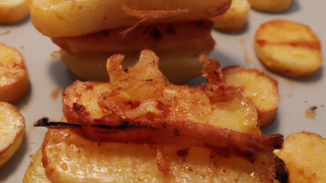 purée de pomme de terre binj refroidie et agrémentée de noisette et huile de noisette avec une forme précise er panure