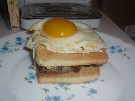 La recette rassemble l'idée du croque monsieur et de l'hamburger.