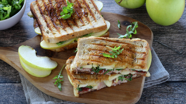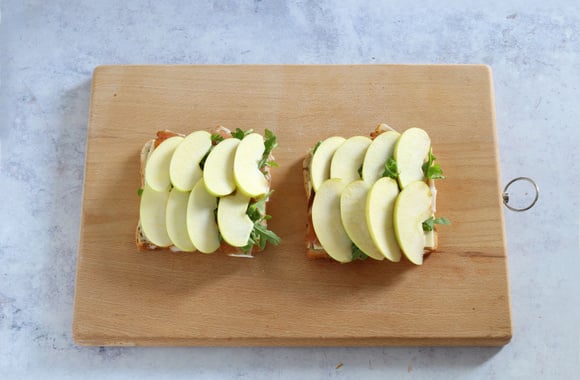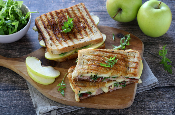 Pour une collation ou un repas sur le pouce, voici notre croque-monsieur sucré-salé-acidulé, grâce à l’association entre les Pommes du Limousin AOP, le jambon Speck et la tomme.