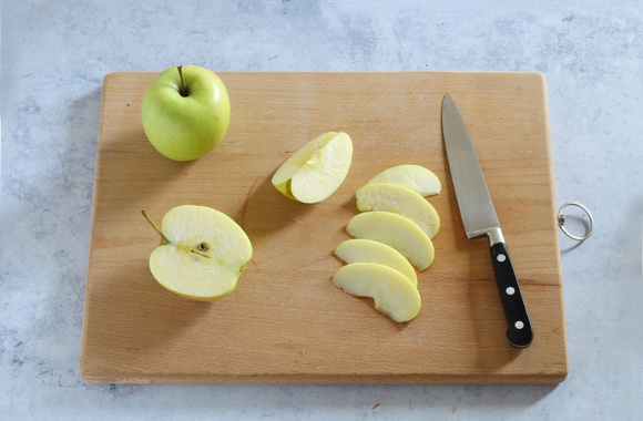 1Lavez les Pommes du Limousin AOP, coupez-les en quartiers en gardant la peau, retirez le cœur, puis coupez-les en tranches fines.