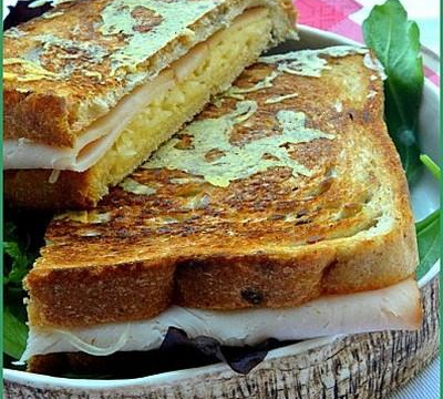 - 2Pour la cuisson, 2 solutions :- Au four position grill ou turbo si vous avez.- Dans une poêle anti-adhésive à feu moyen (je préfère).Dégustez les croque-monsieur encore chauds.