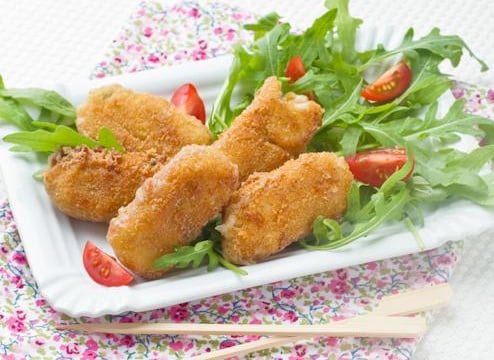 Lorsque la béchamel est bien refroidie, formez des quenelles allongés d'environ 1 cm de diamètre sur 2 cm de long et réservez au réfrigérateur. Panez les croquetas en les passant successivement dans la farine puis l'oeuf battu et enfin la chapelure assaisonnée de sel, poivre et paprika doux. Renouvelez l'opération une seconde fois pour obtenir une panure épaisse.