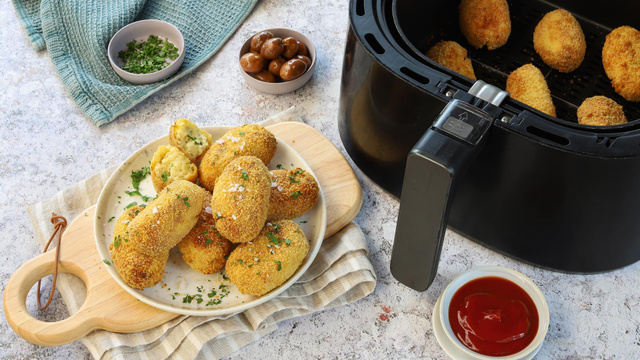 Insérez le panier dans le Airfryer, faites cuire les croquettes à 180°C pendant 10 minutes.