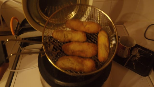 Surveillez la cuisson à la friteuse. A manger avec une sauce au curry délicieuse.