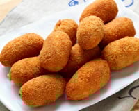 15Et enfin dans la chapelure. Attention à bien enrober chaque croquette de chapelure, c'est important pour la réussite de vos suppli'.