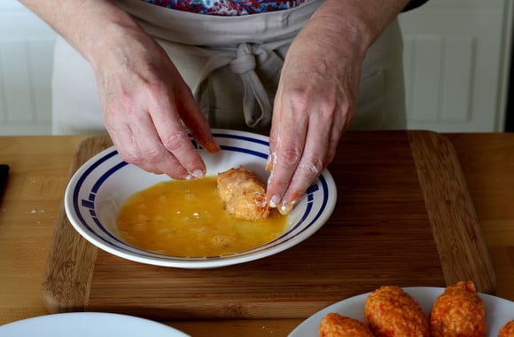 14Passez chaque suppli' dans les deux oeufs battus.
