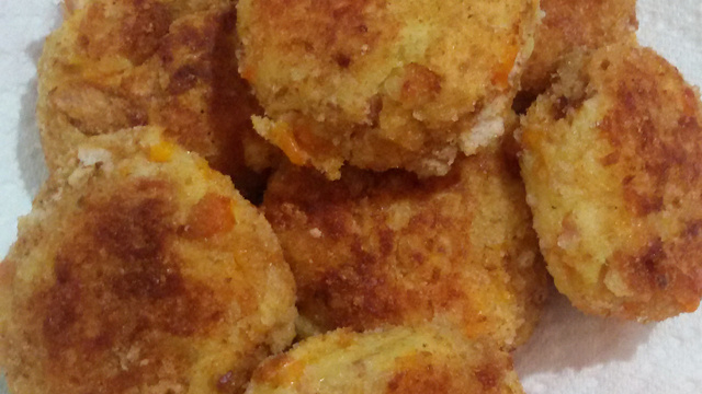Former les croquettes, les passer dans l'oeuf battu puis la chapelure. Les déposer dans une poêle huilée et cuire 2 mn de chaque côté.