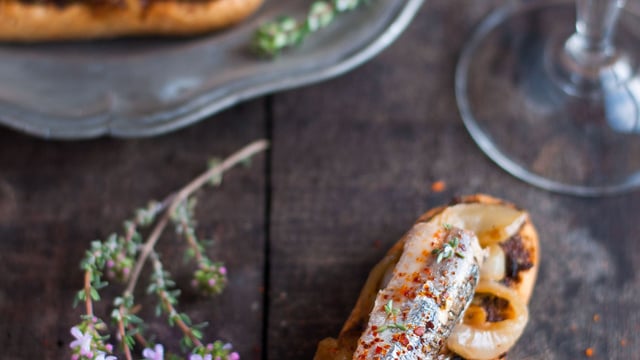 Plus doux que les anchois au sel, les anchois entiers à l’huile d’olive Phare d’Eckmühl se révèlent d’une grande délicatesse en bouche. Inspirée de la cuisine niçoise, provençale et italienne, cette recette fera l’unanimité à l’apéritif ou en entrée. Elle associe une tapenade « express » maison, une compotée d’oignons au vinaigre balsamique, du thym, un soupçon de piment d’Espelette et les anchois entiers à l’huile d’olive. Léger et gourmand, l’ensemble peut être accompagné d’une salade de mesclun.
