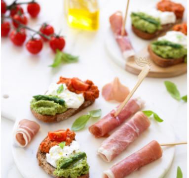 Crostini tricolores, jambon de Parme AOP