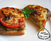 Le pain maison sèche assez rapidement en été... en plus il me restait de la chair d'aubergine aillée d'hier... voici le résultat!
