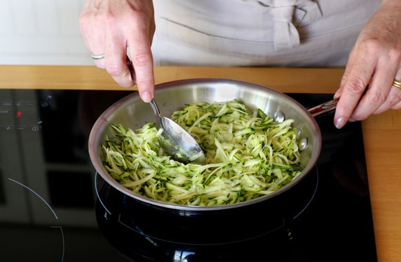 3Faites revenir la courgette dans une poêle chaude avec une cuillère à soupe d'huile d'olive pendant 2 minutes.