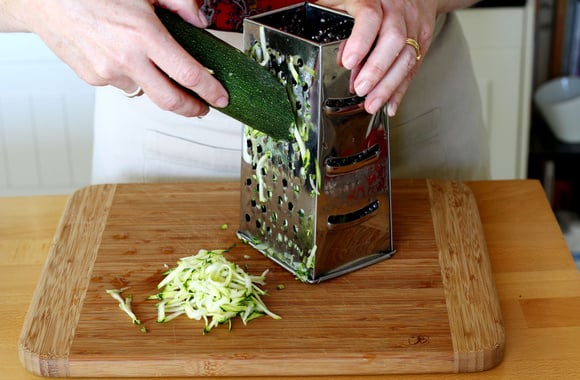 2Râpez la courgette, sans la peler (lavez-la bien au préalable).