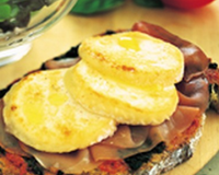 Dégustez ces tartines chaudes, accompagnées de petites salades mélangées rouges et vertes, de roquette, ou de mesclun, comportant de fines lamelles de fenouil ou de céleri... ou encore d'une salade de tomates très fermes mêlées à de fines lamelles d'oignons.