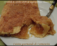 C'est un gâteau que j'ai découvert en Espagne avec cette fameuse confiture. Je ne sais pas si c'est de la pâte feuilletée qu'ils utilisent pour faire ces gâteaux. Au niveau de la texture et au goût ça a l'air d' être tout à fait ça, sauf qu'il fallait des pignons de pin et que je n' en avais pas. Je ne connais pas le nom de cette pâtisserie, et comme j'ai employé le même procédé que pour faire une croustade, je l'ai tout simplement appelé ainsi.