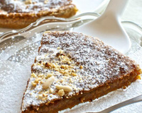 Saupoudrer le gâteau de sucre glace et de pignons de pin. Servir à température ambiante.