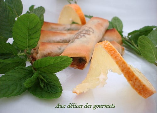 Cigares aux crevettes parfumés aux herbes fines.