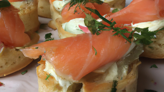 Disposer harmonieusement un morceau de saumon fumé.