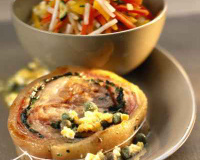 - 3Le jour même : couper des tranches épaisses et les ficeler comme un tournedos.Cuire à feu moyen (dans un filet d'huile) dans une poêle antiadhésive 5 min de chaque côté.