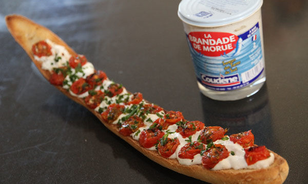 Tartiner le pain de tapenade verte ou de caviar d'aubergine de Coudène.
