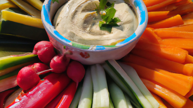 Présenter les légumes dans un grand saladier et les dip dans 6 petits bols. Servir frais.
