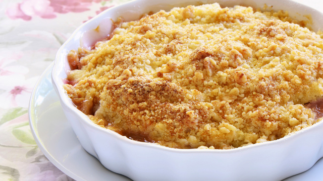 Un crumble à déguster au printemps au moment de la saison de la rhubarbe.