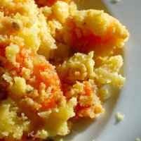 On peut aussi ajouter de fines lanières de jambon fumé ou de bacon après avoir écrasé les cubes de potiron.
