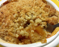 Verser les fruits au fond des ramequins et couvrir de la pâte à crumble.