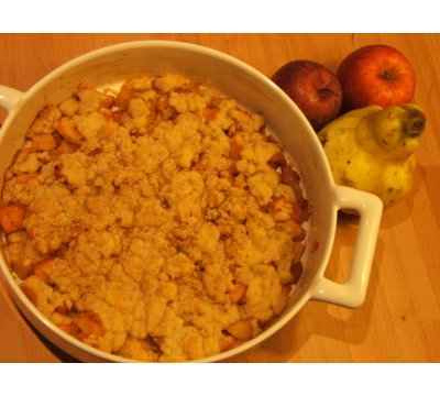 Une recette gastronomique du fameux crumble avec de la poudre d'amande ! Pomme, poires, coings, rhubarbe,... A vous de voir !