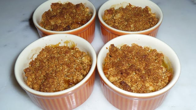 Variantes:- On peut remplacer la moitié de l'amande par de la noix de coco, et faire un crumble plus exotique; aux mangues par exemple....- Ou bien par de la poudre de noisettes avec des pommes (une tuerie !)- On peut ajouter des pépites de chocolat avec des poires ou de la cannelle avec des pommes...- On peut remplacer le sucre roux par du blanc...