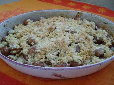 Recouvrir les mirabelles avec les miettes du crumble.