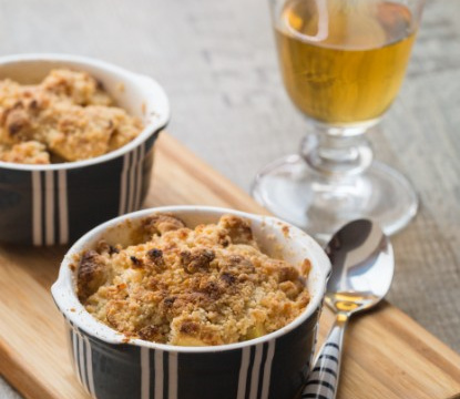 La douceur du crumble aux pommes et son côté caramélisé vont à merveille avec un vin liquoreux du Bordelais. Le Château Arnaudas est son complément parfait : complexe, aux arômes de fruits confits et caramélisés, avec ce qu"il faut de vivacité pour ne pas alourdir les papilles. AOC Sauternes Blanc 2007 Sauternes Château Arnaudas MDC 75 cl