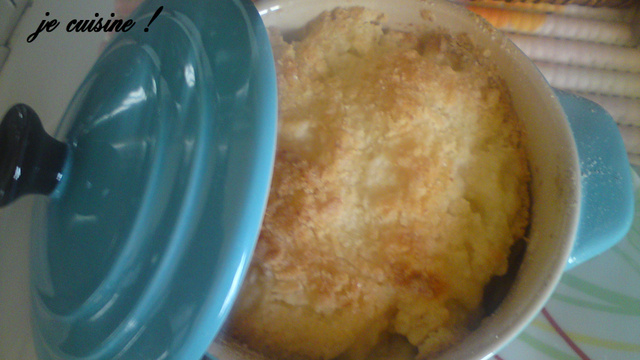 Couper la pomme et la banane (après avoir ôter la peau) en petits morceaux, et les étaler dans des petites cocottes. Recouvrez les fruits de petits morceaux de pâte.