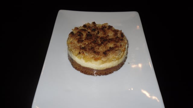 Cheesecake recouvert d'un crumble aux pommes.