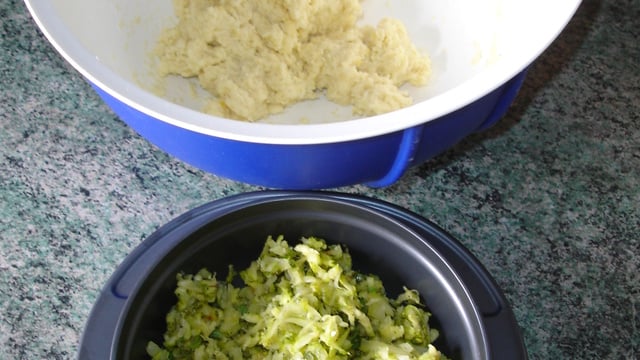 Râpez les courgettes non pelées avec une grille à gros trous.