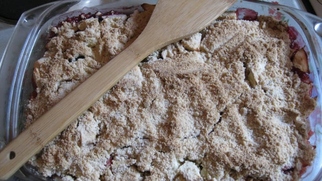 Recouvrir les fruits de la pâte sableuse.