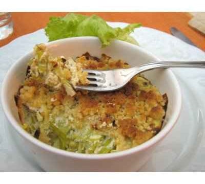 -Disposer les poireaux au fromage dans des ramequins à bords hauts légèrement beurrés, répartir les miettes de crumble par-dessus et enfourner pour 20 à 30 minutes à 180°C, jusqu'à ce que le dessus soit bien doré.