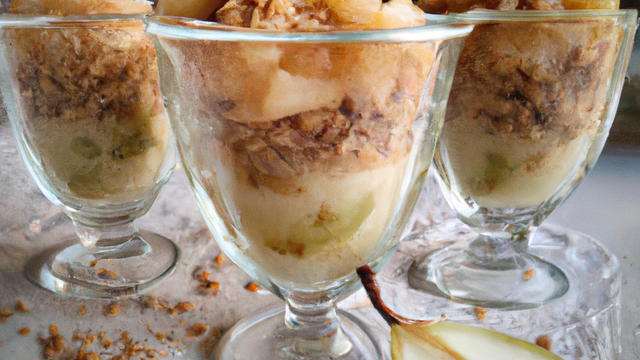 Une compotée de poires aux pignons et aux amandes à découvrir sous un crumble croustillant.