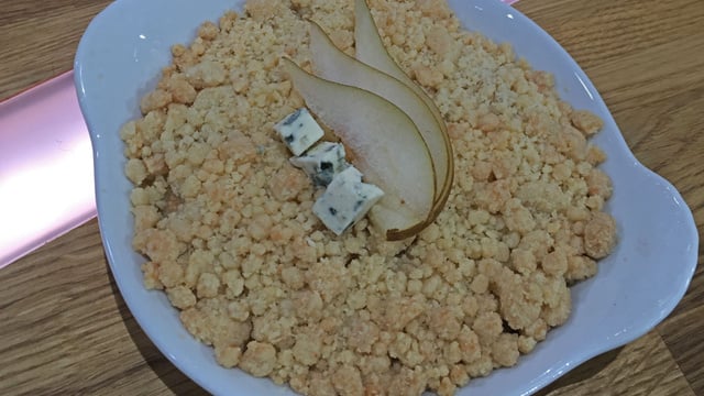 Le mariage entre les poires et la fourme d'Ambert est magique. Avec le croquant du crumble, c'est encore mieux.