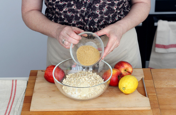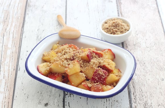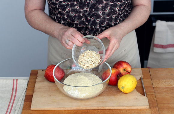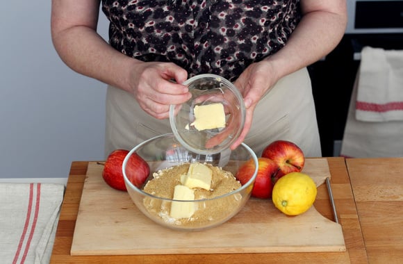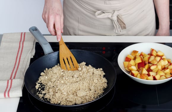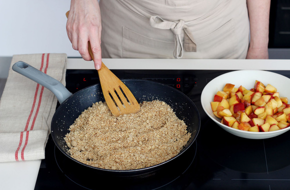 11Versez-les dans un plat, essuyez la poêle et ajoutez la pâte à crumble.