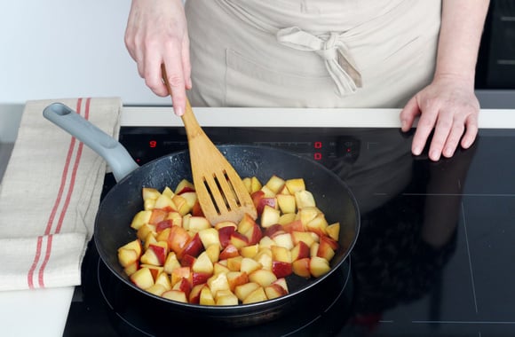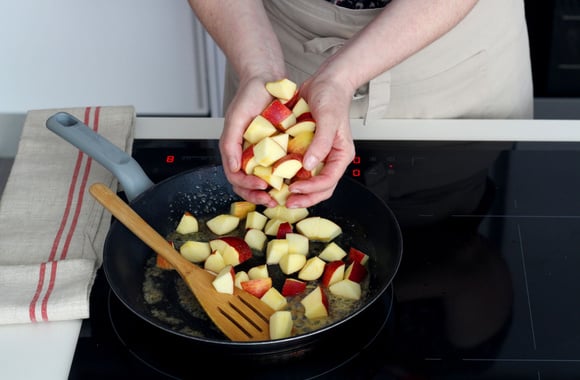 6Coupez les pommes en quartiers, retirez le coeur, coupez chaque quartier en deux puis en cubes.