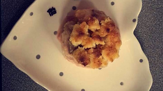 Mélanger la farine et le sucre. Ajouter le beurre mou malaxée pour obtenir une pâte sableuse. Déposer les pommes et la rhubarbe égoutter dans un moule beurré, recouvrer de pâte émiettée et mettre au four 25/30min.