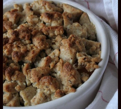 Un crumble salé délicatement parfumé à la noisette, la châtaigne et au parmesan... Des parfums qui se marient très bien avec le potimarron!