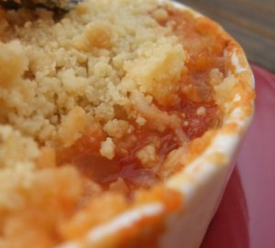Enfourner pour 20 à 25 minutes, en prenant soin de mettre une lèche-frite sous votre grille de four, car ces crumbles individuels ont une fâcheuse tendance à essayer de "s'échapper". Le dessus doit être à peine doré.