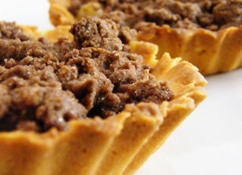 Un crumble sucré disposé sur une pâte sablée maison