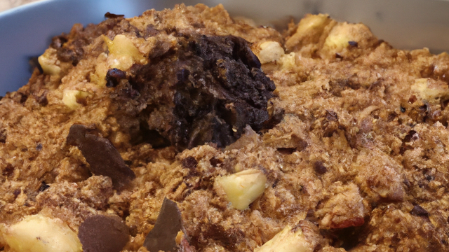 Verrine de poire et de pomme chaude nappée de chocolat ert recouvert de biscuit sec