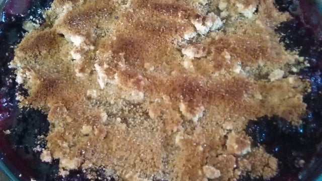 Recouvrir les fruits avec la pâte et rajoutez les biscottes, du sucre de canne et le café sur la pâte.
