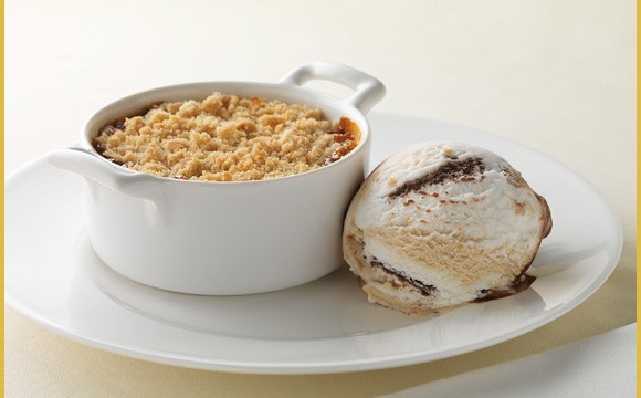 Un crumble parfait pour vos soirées d'hiver. Vous pouvez aussi utiliser la crème glacée Carte d'Or® Vanille de Madagascar pour réaliser cette recette.