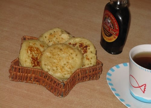 Faites fondre le beurre. Beurrez les cercles à pâtisser et les crêpières au pinceau. Déposez les cercles sur les crêpières. Faites chauffer les crêpières. Versez 1 louche de pâte sur 1 cm d'épaisseur. Laissez cuire très doucement. Quand la pâte est prise, ôtez les cercles. Une fois le dessus plus sec, retournez-les. Laissez-les dorer légèrement.