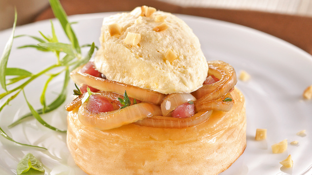 la compotée d'oignon au jambon cru. Prélever la glace de la sorbetière