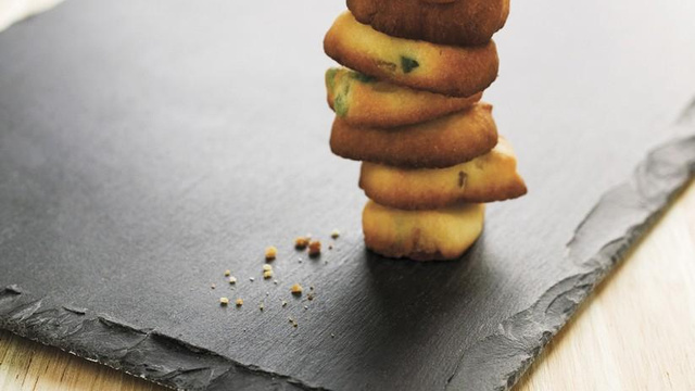 Déposez les dés sablés sur une plaque à pâtisserie recouverte d'une feuille de papier sulfurisé. Glissez-la au four et laissez cuire 15 à 20 min, jusqu'à ce que les dés soient dorés.